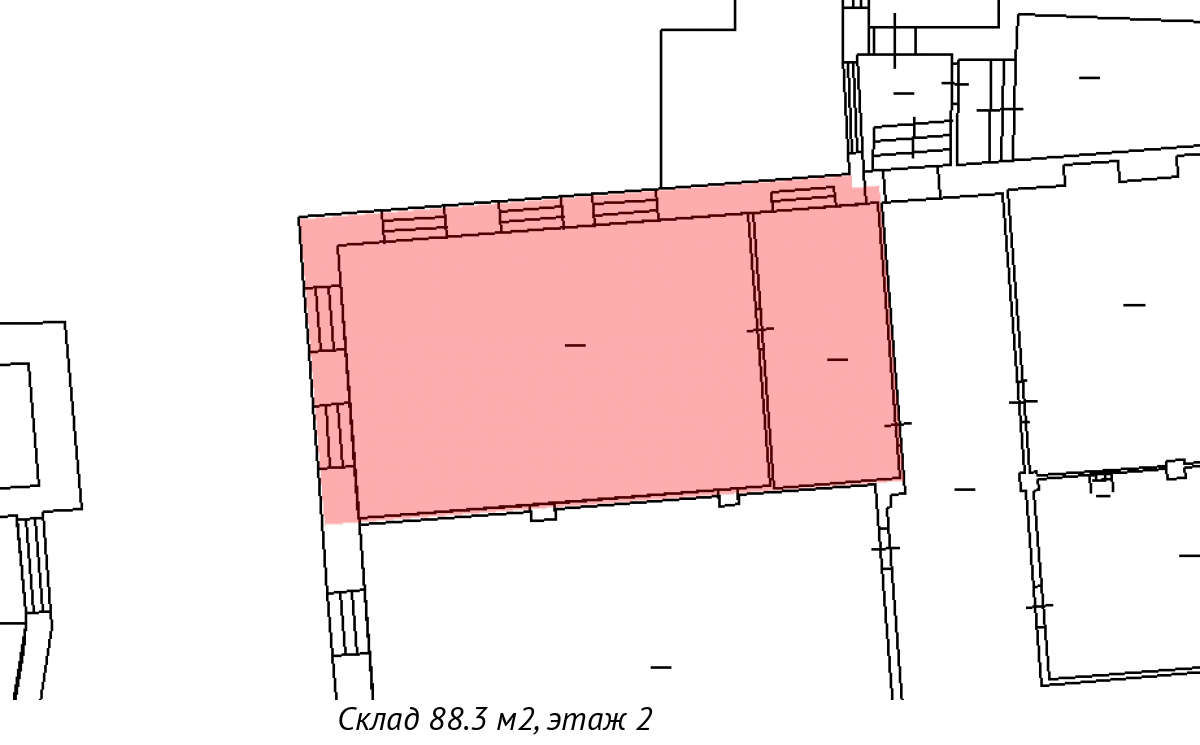 Помещение площадью 88,3 кв. м расположено на 2-м ЭТАЖЕ здания.