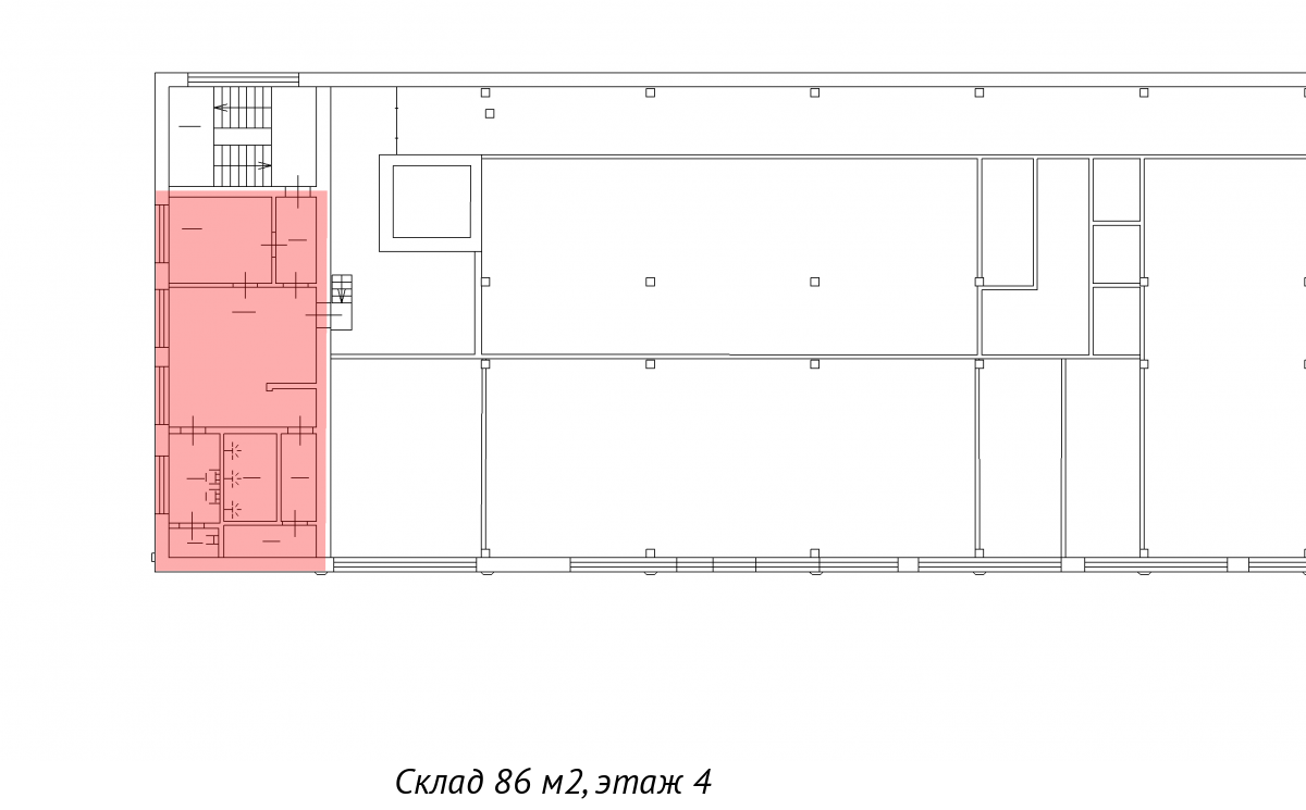 Аренда блока площадью 86 кв. м под ЧИСТЫЙ СКЛАД на четвёртом этаже здания по адресу: ул. Швецова, д. 38.